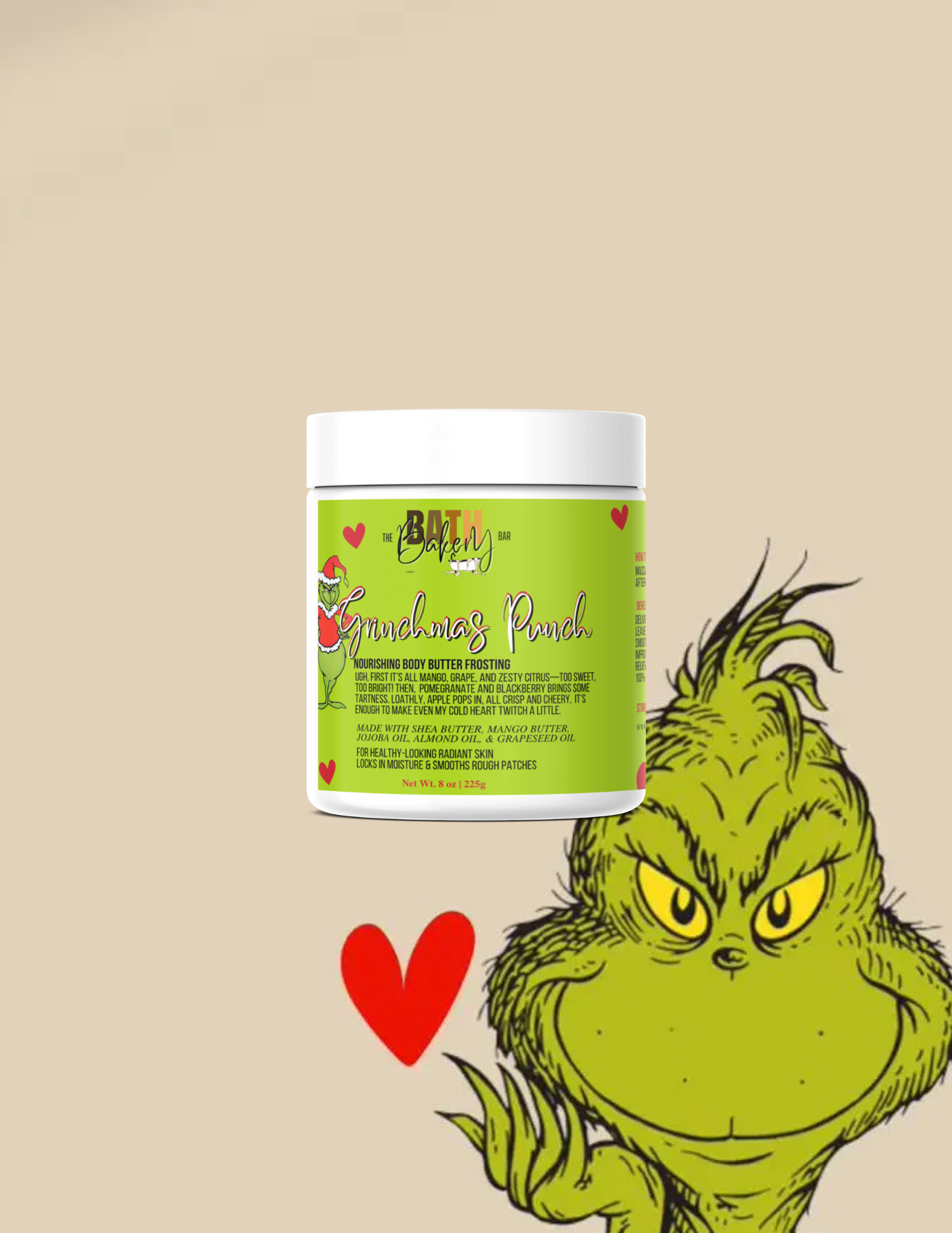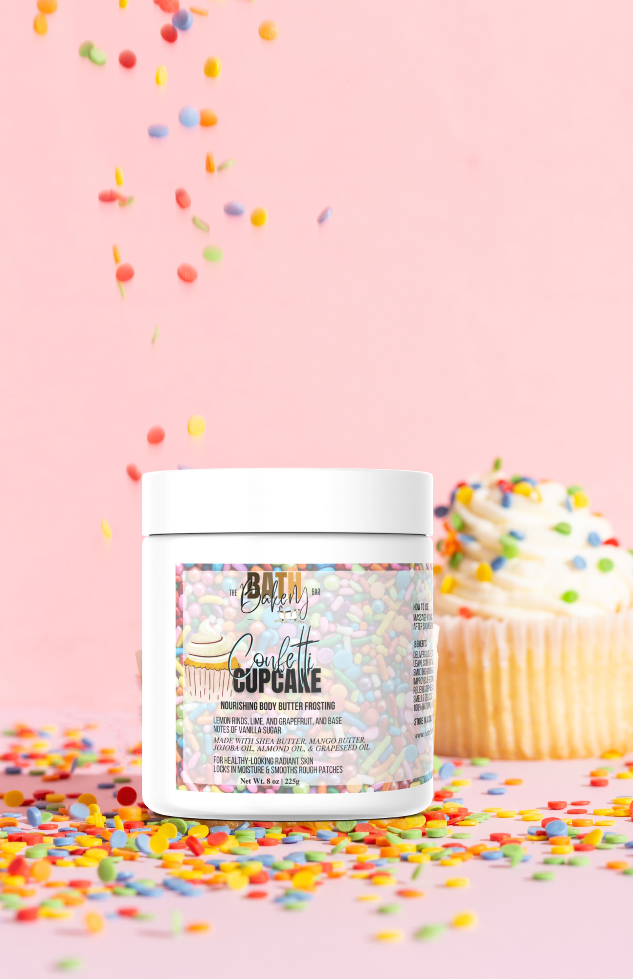 Moisturize & rejuvenate your dry skin with our luxurious body butter frosting, while smelling good enough to eat! Massage a small amount on damp skin after shower/bath and your skin will be touch-ably softer and smoother.