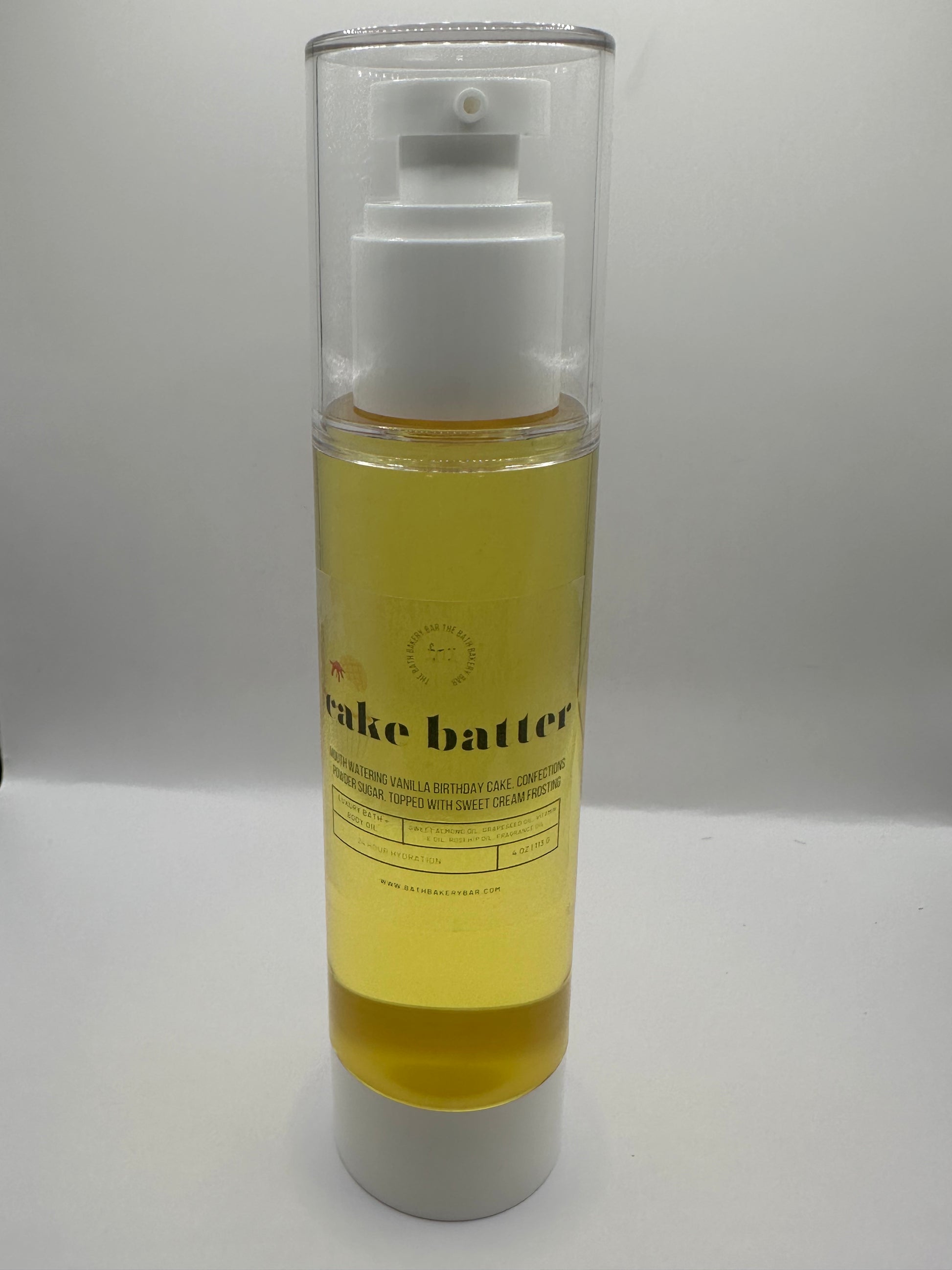 Cake Batter body oil is the sweetest treat for your skin! 🍰💦 Indulge in the delicious scent of freshly baked vanilla cake with butter cream frosting while nourishing and hydrating your skin. It's like a dessert for your body! 😍🧁✨