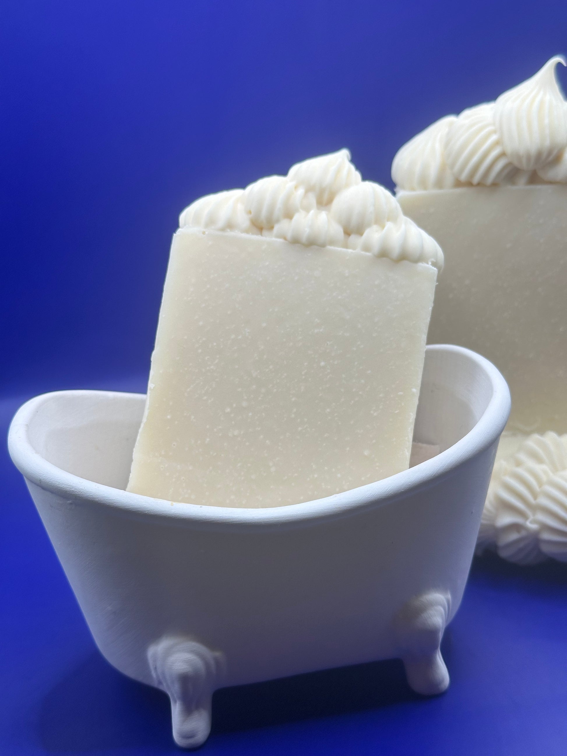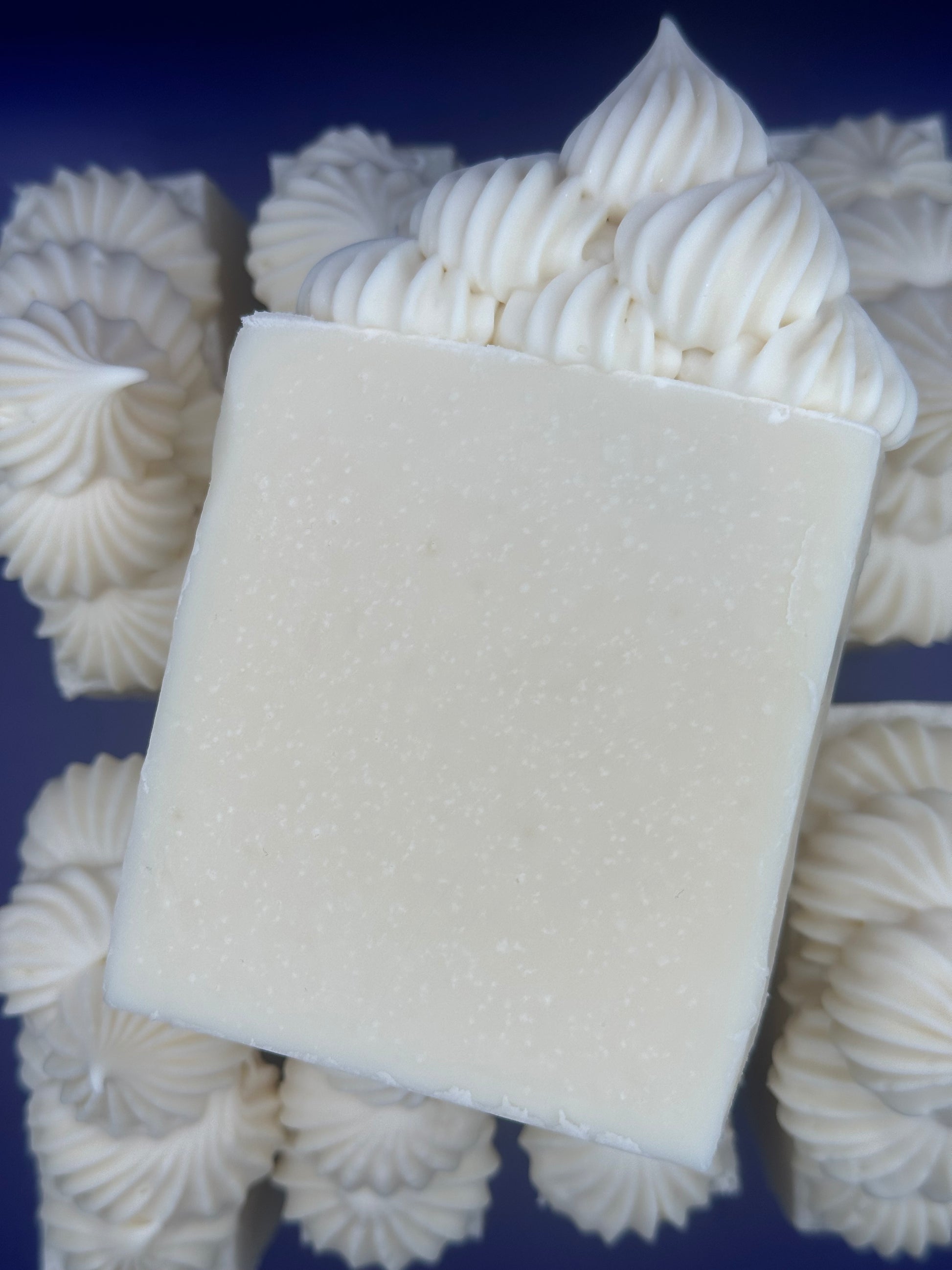 Just The Bubbles is infused with Olive Oil, Coconut oil, & Castor Oil which makes the perfect hard, bubbly, creamy bar and feels amazing on the skin.